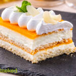 Amikor teljesen megszilárdult, kivesszük a hűtőből, és lecsatoljuk a tortaforma oldalát. A habtejszínt kemény habbá verjük, majd a torta tetejét és oldalát bevonjuk vele, végül tortadarával megszórjuk.