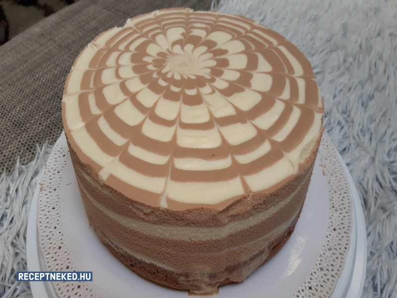 A 26 cm-es tortakarikánkat alul kibéleljük sütőpapírral, beleöntjük a masszát és 180 fokon 20 perc alatt készre sütjük. Tűpróbával ellenőrizzük, hogy jó-e.