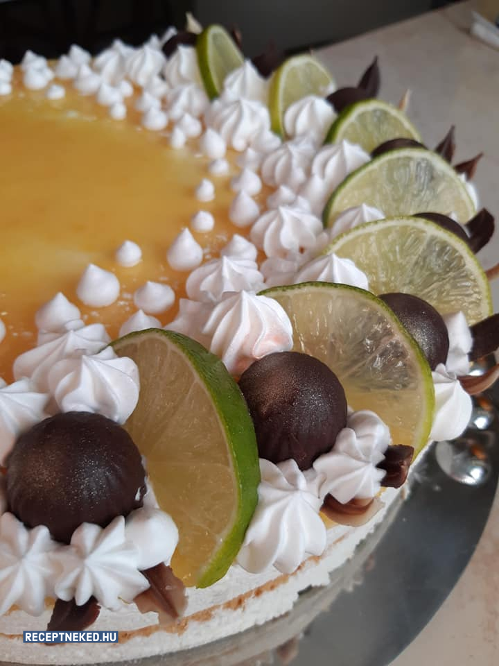 Oldalát tortafésűvel áthúzhatjuk, tetejét citromszeletekkel díszíthetjük.
