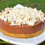 A ledarált mézeskalácsot összekeverjük a barnacukorral és 120 ml barna vajjal. A keveréket a tortaforma aljára nyomkodjuk, úgy, hogy egyenletes alapot kapjunk, és a szélein 2 ujjnyi magas peremet alakítsunk ki. Az alapot 10 percig elősütjük, majd kivesszük és hagyjuk hűlni.