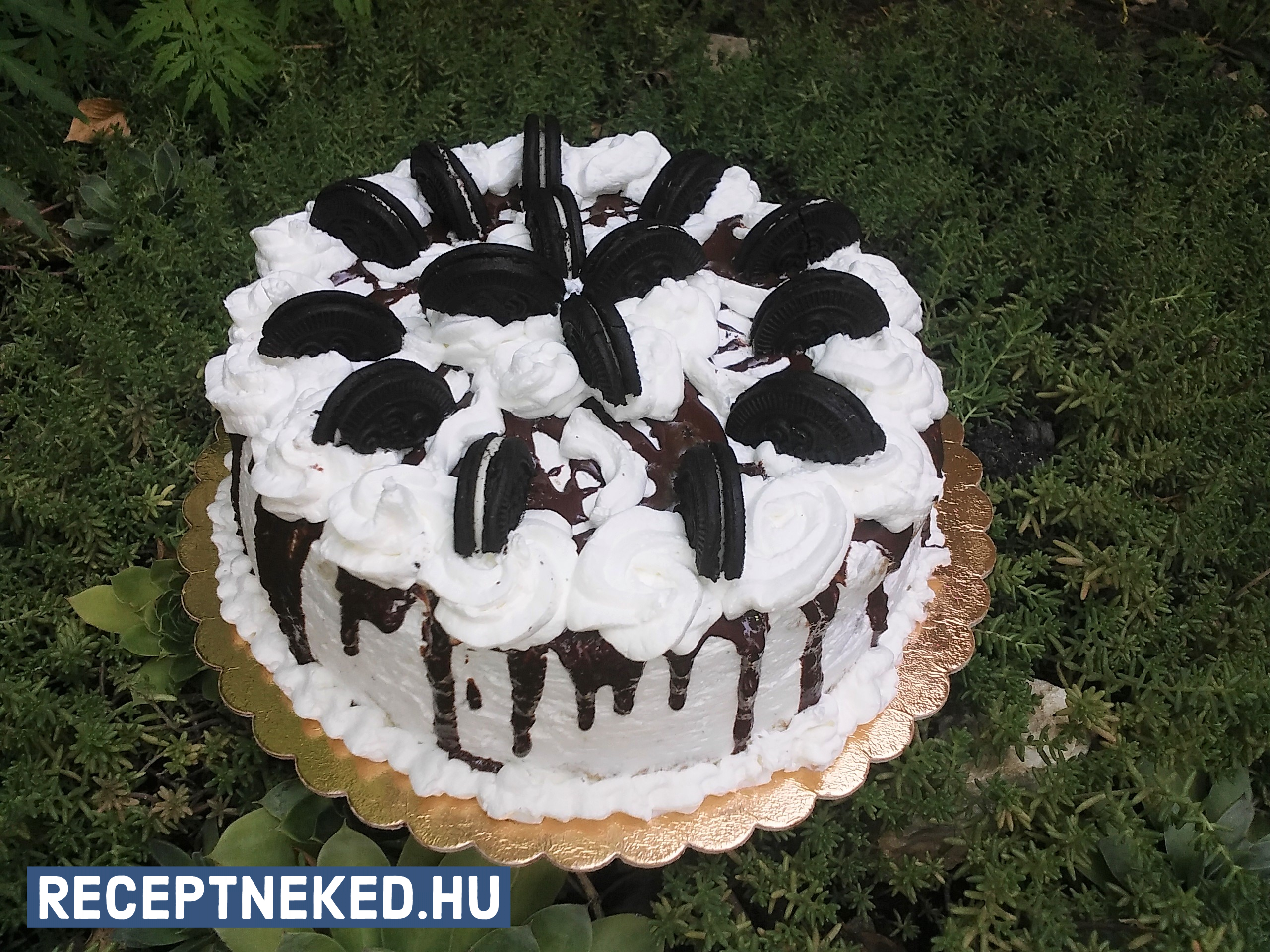 480 g tejszínt verjünk kemény habbá, majd óvatosan forgassuk össze a kihűlt fehér csokoládés krémmel.