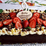 A díszítéshez a tejszínt felverjük keményre és ízlés szerint díszítjük a tortát.