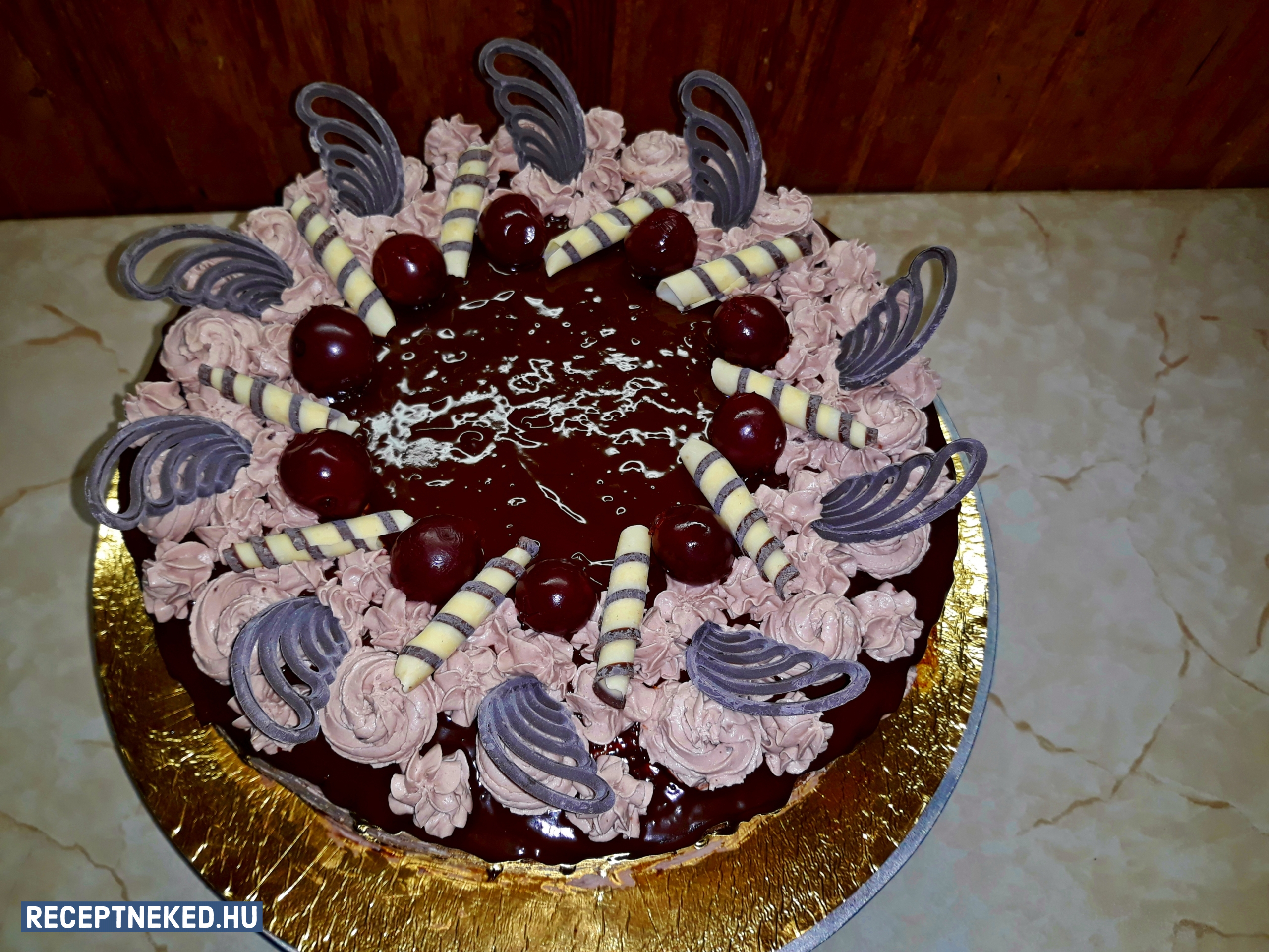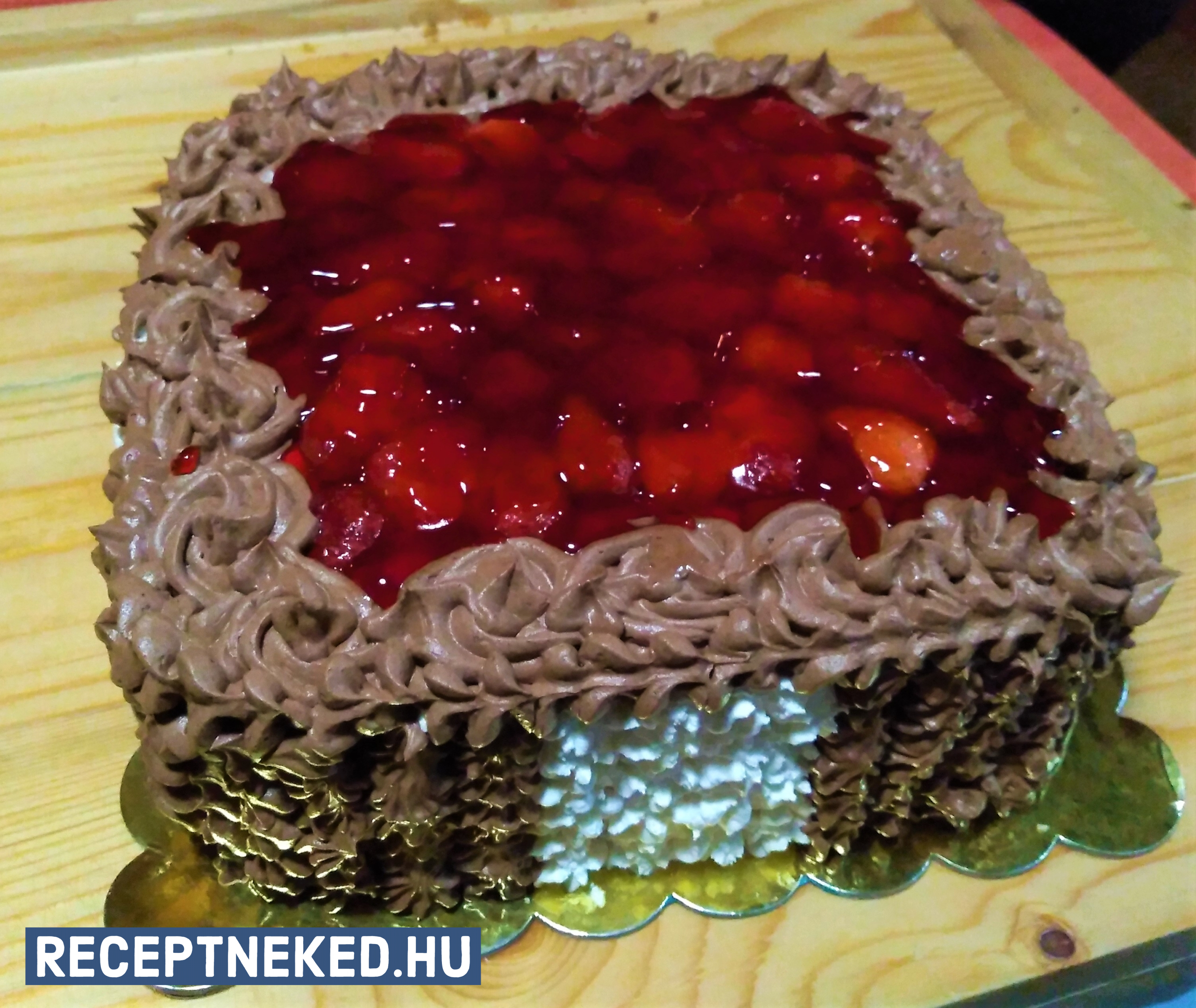 A csokoládét az étolajjal mikróban felolvasztjuk. A torta tetejére kenjük úgy, hogy az oldalára is folyjon belőle.