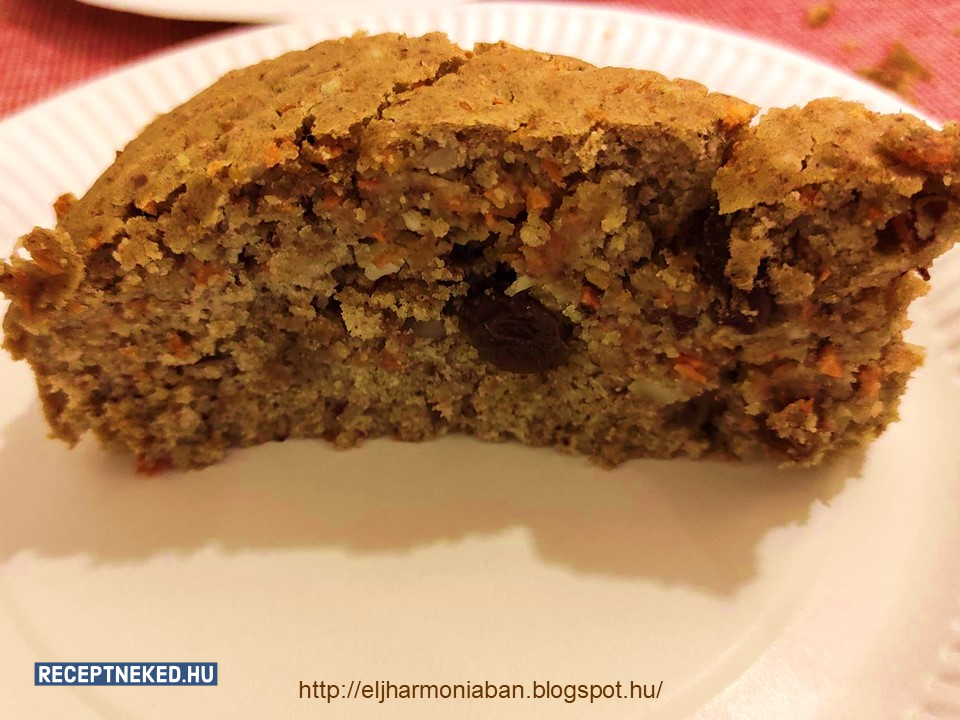 A nedves hozzávalókhoz kettesével kanalazva hozzákeverjük a száraz hozzávalókat, végül a zúzott diót, apróra vágott mazsolát és a reszelt répát.