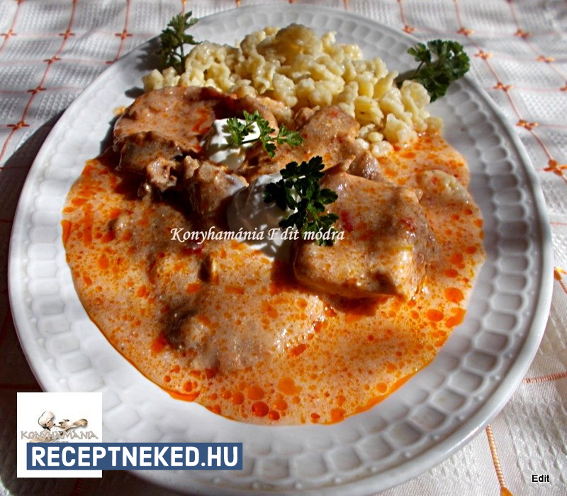 Ha úgy ítéljük, hogy nem elég sűrű, egy kis tejfölös lisztes habarással sűríthetünk rajta.